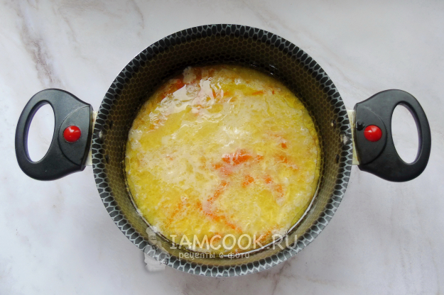 сыр можно с зеленью или грибами, при перемешивании сыр быстро растворится, не
