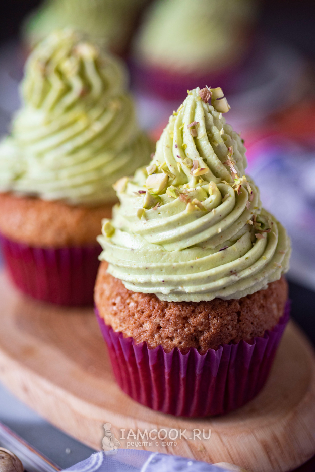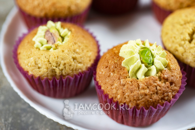 Фисташковые капкейки с фисташковым кремом можно подавать к столу. Приятного аппетита!