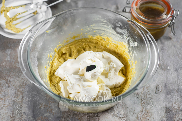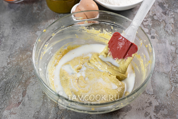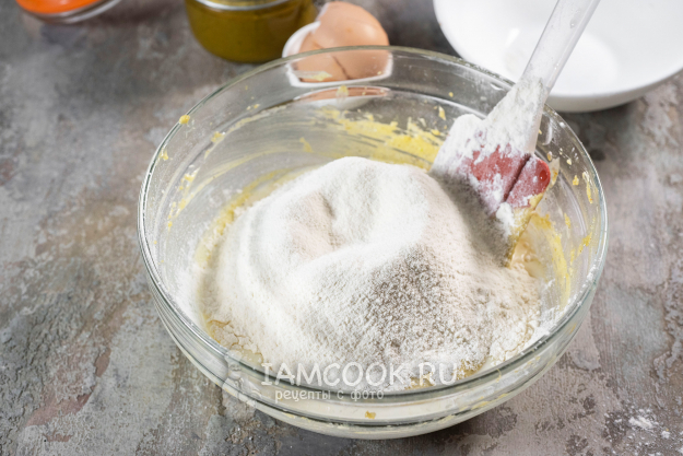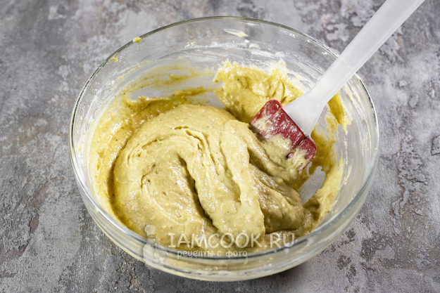 Лопаткой перемешаем все ингредиенты до получения однородного, вязкого теста.