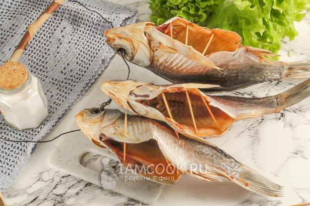 У меня караси сушились возле радиатора и стали отменными через 5-6 дней. Время от времени я их перевешивала, чтобы они сушились равномерно.