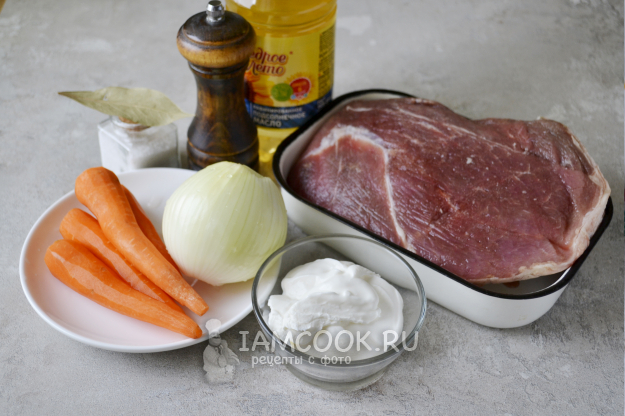 Продукты для приготовления гуляша из говядины со сметаной - перед вами.