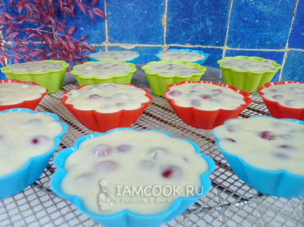 Выпекала маффины с красной смородиной в разогретой духовке при температуре 180°С 20 минут. Готовым маффинам дала немного остыть, а затем достала их из формочек и уложила низом вверх, чтобы они быстрее остывали.