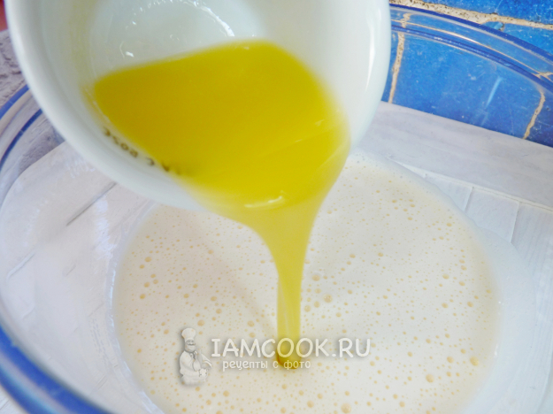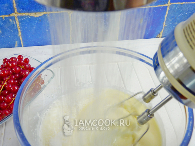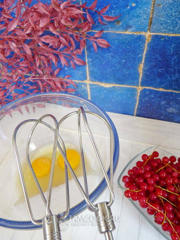 Яйца заранее достала из холодильника, чтобы они нагрелись до комнатной температуры, а после взбила их с сахаром до пышной белой массы.