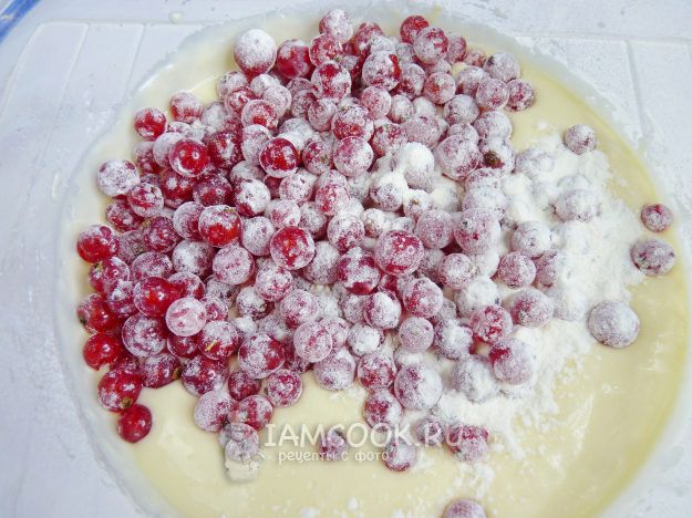 Смородину добавляла в готовое тесто частями, каждый раз аккуратно перемешивая лопаткой, чтобы не повредить ягоды.
