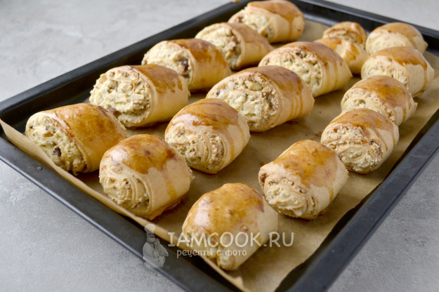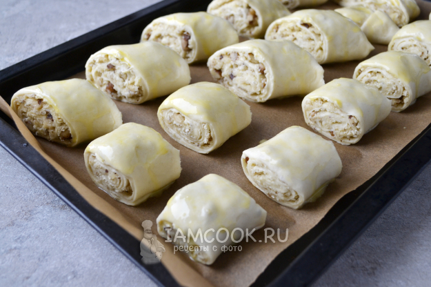 Можете смазать поверхность заготовок взболтанным куриным желтком при помощи кисточки.