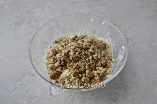 Добавьте измельченные орехи и перемешайте. Начинка для назук готова.