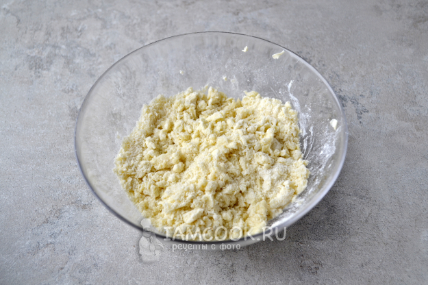 Быстро руками перетрите муку, сахар и масло до крошки.