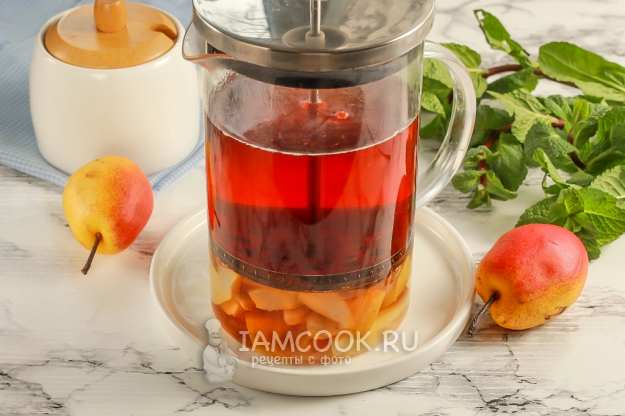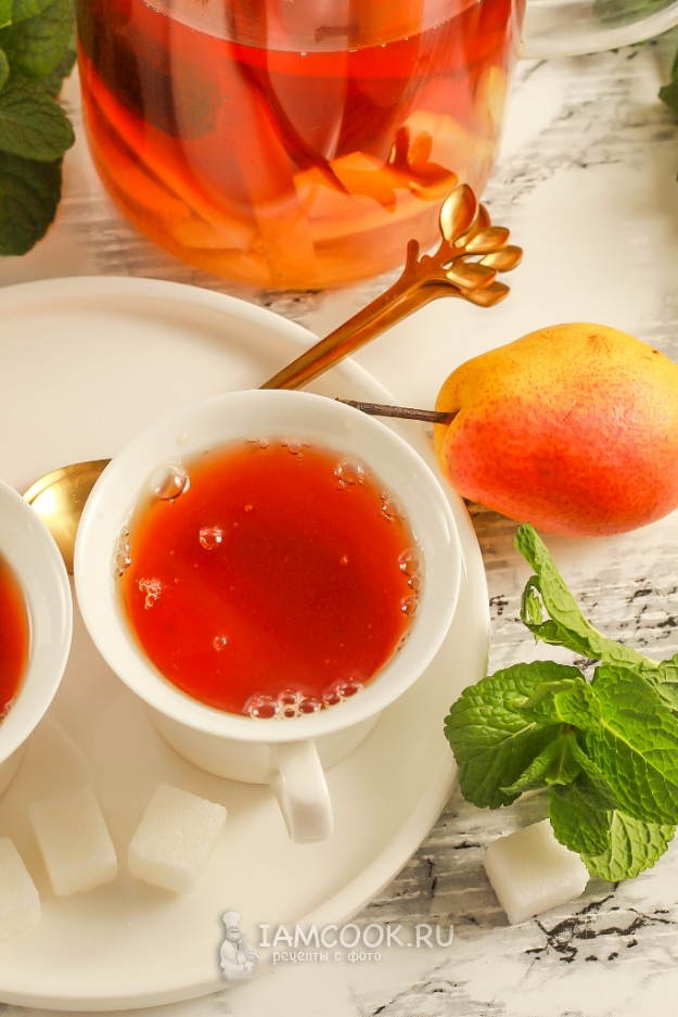 Разлейте грушевый чай в чашки или стаканы и подайте к столу горячим. Не забудьте дополнить напиток румяной выпечкой или поджаренными тостами, пирожными.