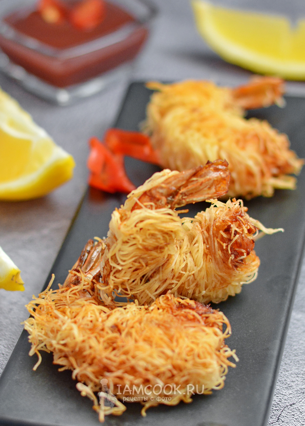 Креветки в тесте катаифи готовы! Долька лимона и любой соус на свой вкус - и жизнь удалась!