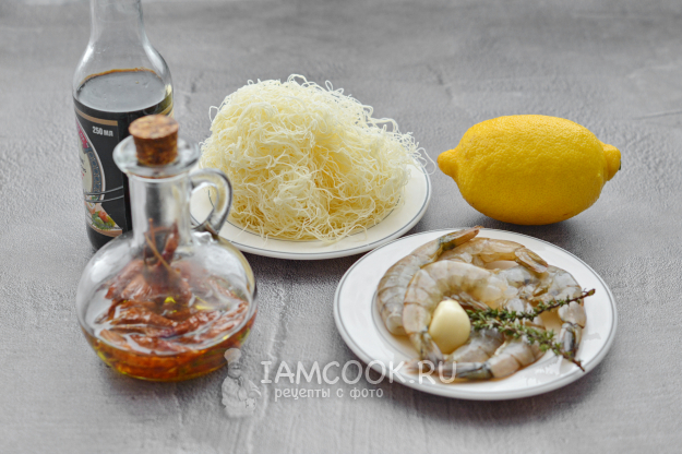 Соберите всё необходимое для приготовления креветок в тесте катаифи и приступим.