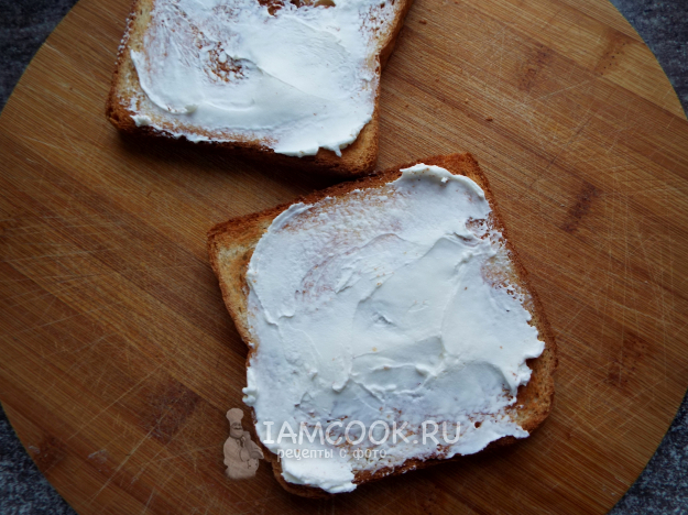 Вместо творожного сыра можно смазать хлеб майонезом.