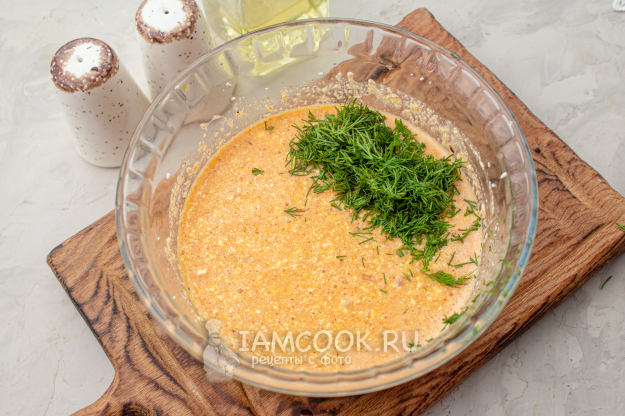 Укроп нарежьте мелко, добавьте в омлетную массу. Перемешайте.