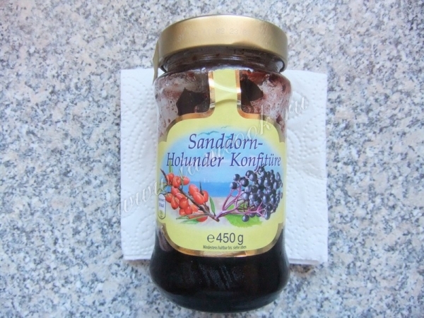 У меня конфитюр из облепихи и бузины, можно взять любой другой.