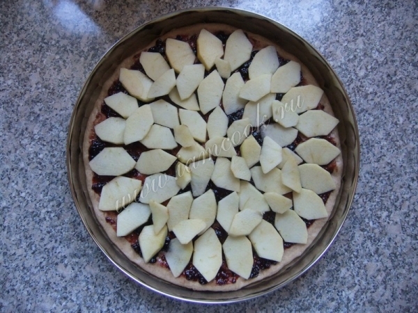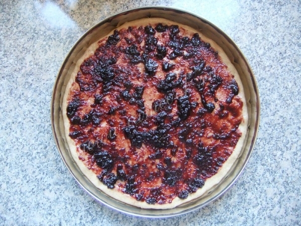 Выкладываем конфитюр и распределяем его по всему тесту.