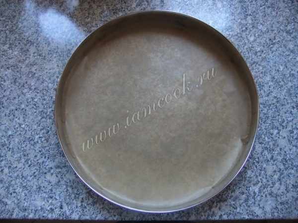 Подготовим лист: положим бумагу для выпечки. Я пользуюсь турецким круглым листом.
