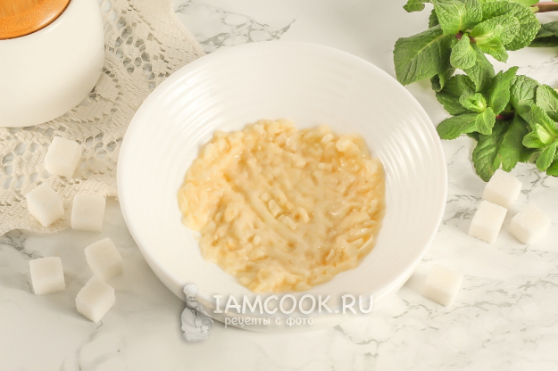 Очистите банан от кожуры и его половину помните вилкой в пиале или на тарелке. Допустимо добавить сахар или сахарную пудру, если вы не будете добавлять сладость при варке.