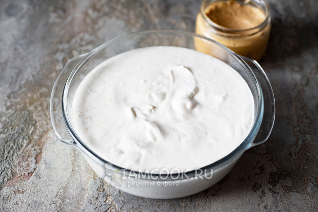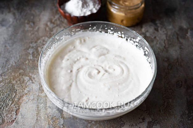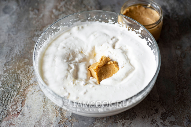 Ко взбитым сливкам добавим арахисовую пасту, сахарную пудру, зальем молоко и добавим ванильный экстракт.