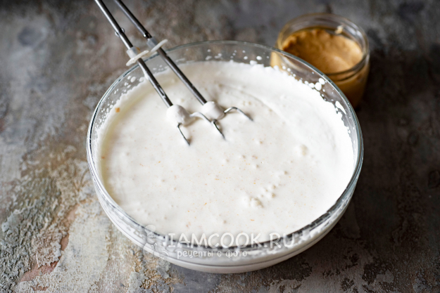 Хорошо охлажденные сливки взбиваем миксером до появления мягких пиков - на поверхности взбиваемой массы должны оставаться следы от венчика миксера.