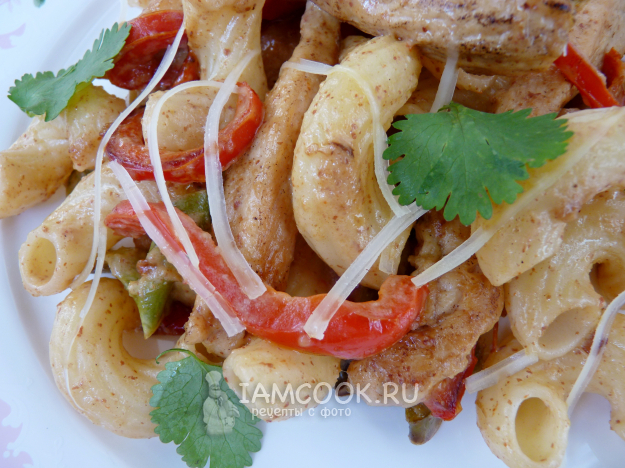 Некий фьюжн азиатской и французской кухонь. Сама бы до такого никогда не додумалась, если бы не пришла в магазин за макаронами, а там встретила этот рецепт на упаковке с пастой.