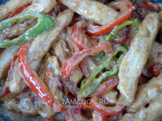 Арахисовая паста со сливками быстро разошлась по цыплёнку с овощами, превратившись в густой, обволакивающий соус. Запах появился весьма аппетитный.