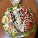 Кобб-салат / Cobb salad - популярный салат американской кухни, был придуман в 30-х годах прошлого века, но версии происхождения разнятся, как обычно ... Традиционный состав: бекон, куриное мясо, листовые салаты, сыр с голубой плесенью, авокадо, помидоры крупные, черри или вяленые, яйца куриные или перепелиные, пикантная заправка. Дополнительно по желанию могут быть добавлены стеблевой сельдерей, сладкая кукуруза, маслины, лук. Голубой сыр иногда заменяется сыром рокфор, бекон - грудинкой.
