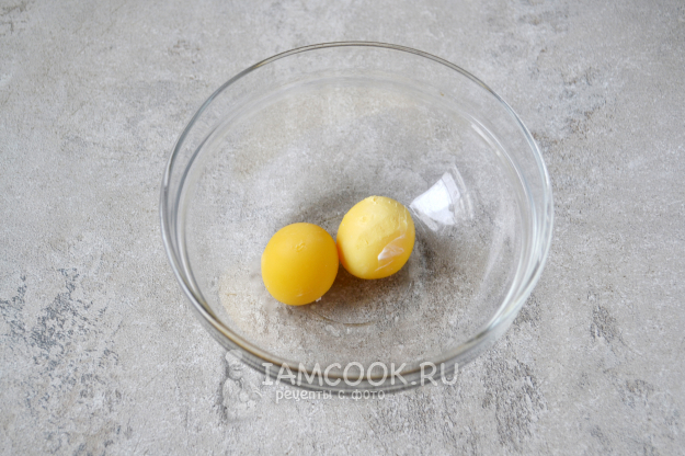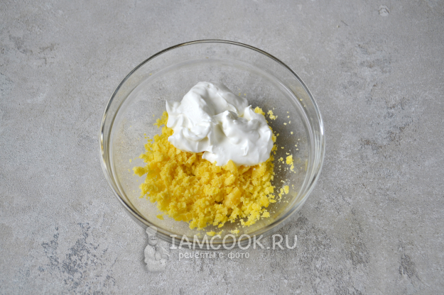 Яйца сварите, залейте холодной водой, затем очистите, отделите желток. Желтки положите в мисочку. Вилкой разотрите желтки до однородной массы.