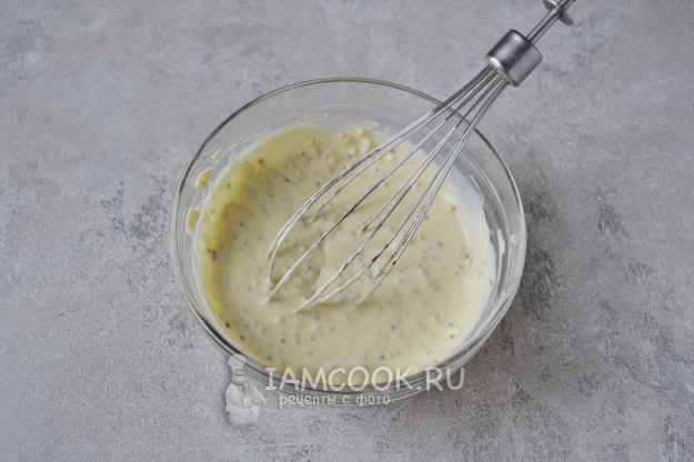 Перемешайте венчиком, чтобы получить однородный соус. Сметанно-горчичный соус готов к подаче.