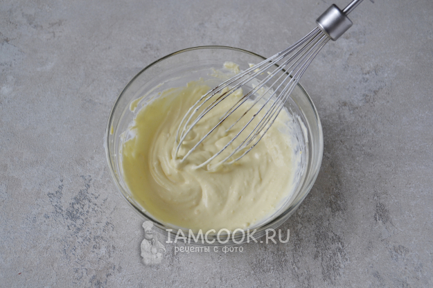 Венчиком взбейте сметану с желтками, чтобы получилась однородная масса.