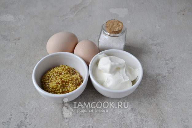 Продукты для приготовления сметанно-горчичного соуса - перед вами.
