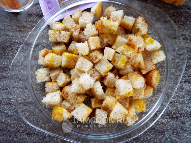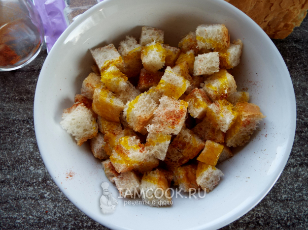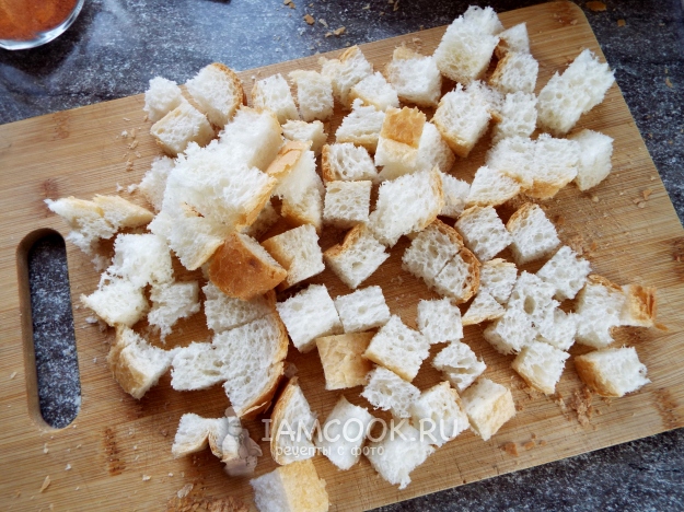 Количество ингредиентов я указала произвольное, это зависит от объёма хлебных кусочков и от личных предпочтений.