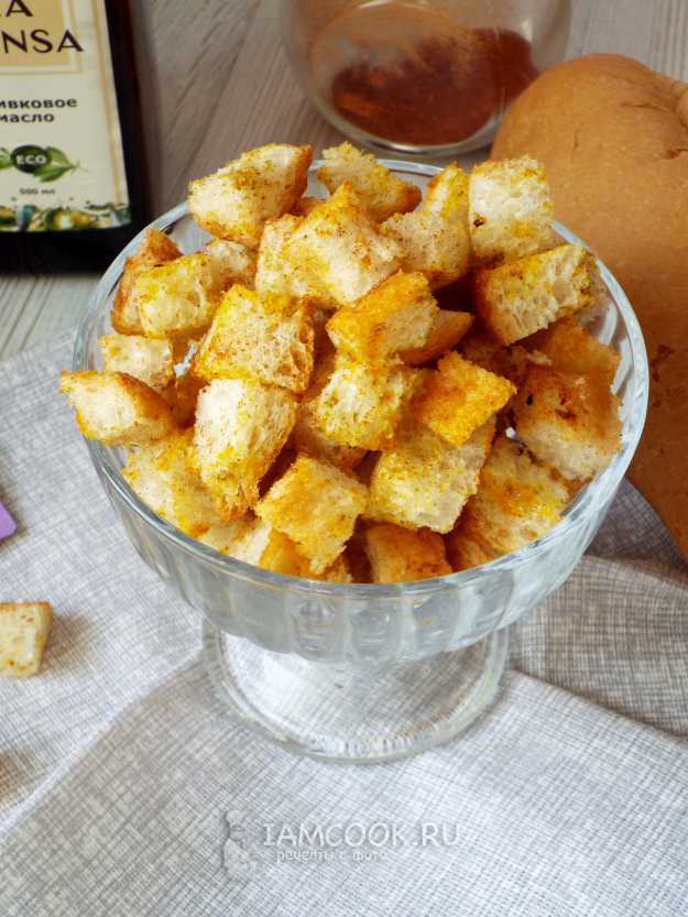 Таким способом можно сделать сухарики без добавок, а можно приготовить сухарики разных вкусов, добавляя свои любимые специи или сушёные травы.