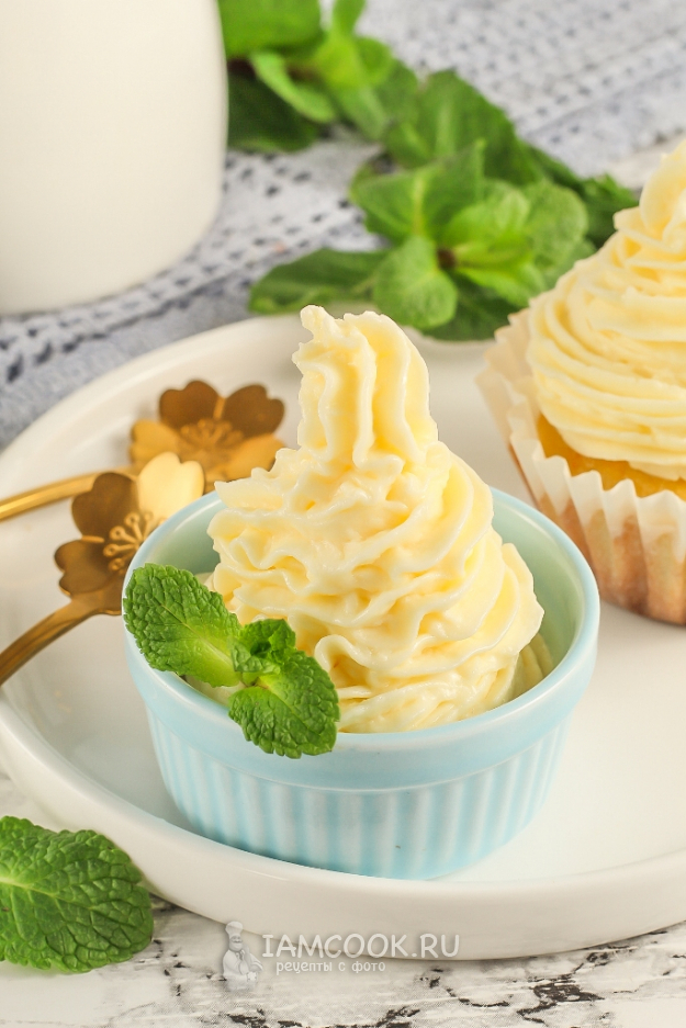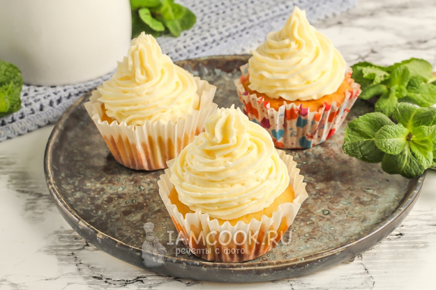 Перед подачей десерта отсадите крем на охлажденные капкейки, используя любую насадку по вашему желанию.