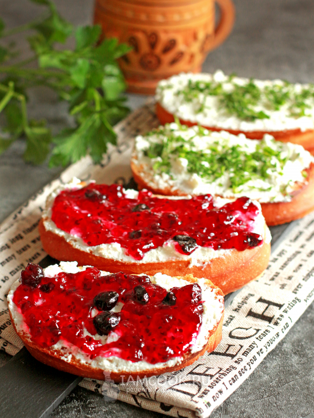 А во втором случае смазываем вареньем. Да, это очень неожиданно, но так же неожиданно и вкусно. Тут смешиваются несколько вкусов - пряный чесночный, соленый творожный, а если творог кисловат, то еще и кислинка присутствует. Варенье ко всему этому привносит сладость, а получается очень необычный вкус, хочется всё доесть до конца. Попробуйте!