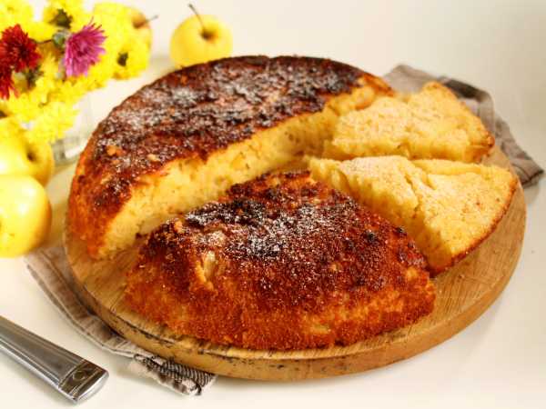 Затем верните пирог в сковороду и под крышкой продолжайте готовить еще 10-13 минут. Время приготовления будет зависеть от степени нагрева.