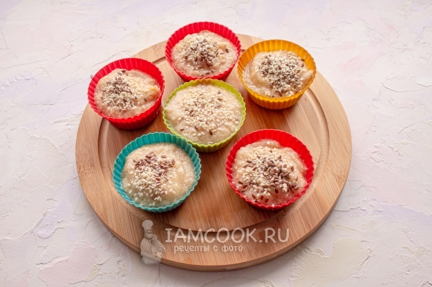Наполните формочки, которые подходят для приготовления в микроволновке, примерно на 2/3, сверху присыпьте, по желанию, семенами кунжута. Готовьте кето булочки в микроволновке при мощности 800 Ватт 2,5-3 минуты.