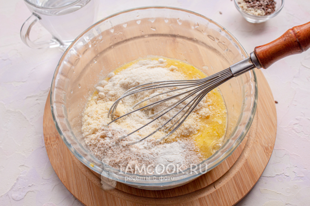 Всыпьте оба вида муки, псиллиум и разрыхлитель.