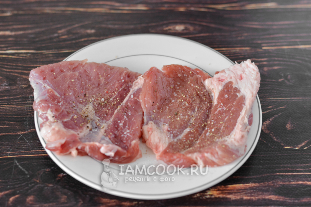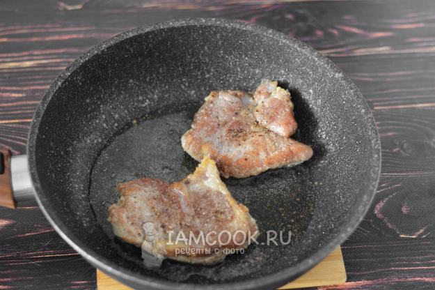 Разогрейте сковороду с маслом, обжарьте свинину с двух сторон и снимите со сковороды.