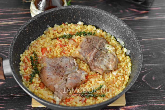 Готовьте птитим со свининой около 10-15 минут под крышкой.