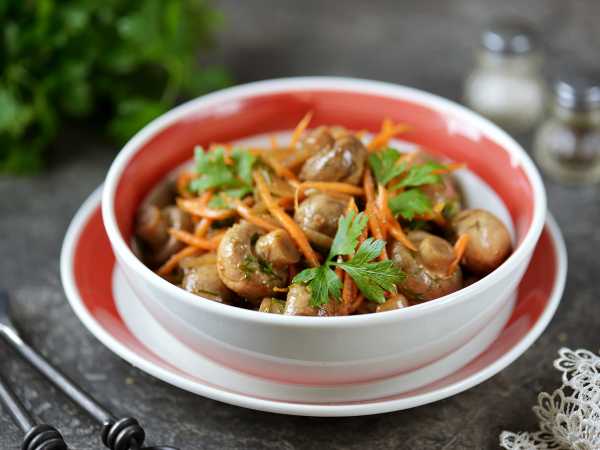 Залейте кипятком и перемешайте. Обязательно попробуйте маринад, и если вам чего-то не хватает, откорректируйте вкус. Накройте миску крышкой или переложите шампиньоны в баночку с крышкой.