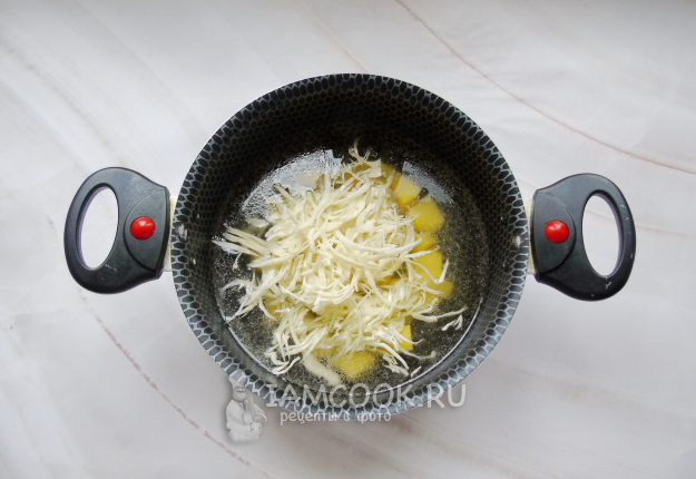 После выложите в кастрюлю с картошкой и капустой.