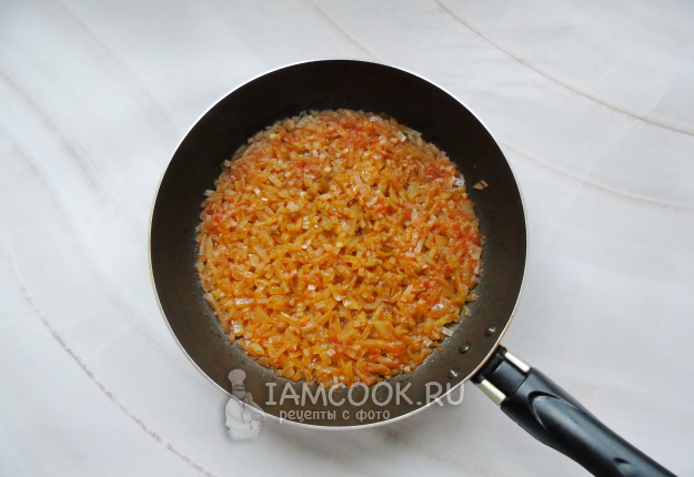 Накройте сковороду крышкой и тушите эти ингредиенты до мягкости.