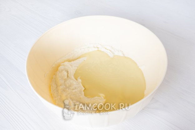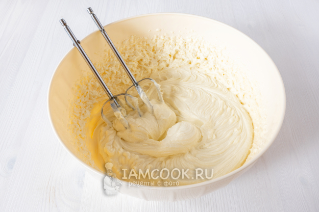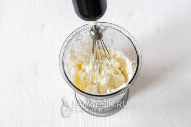 Отдельно взбейте венчиком жирные сливки до мягких пиков.