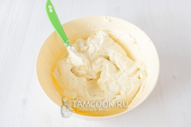 Аккуратно перемешивая, введите взбитые сливки в рикоттно-шоколадную массу.