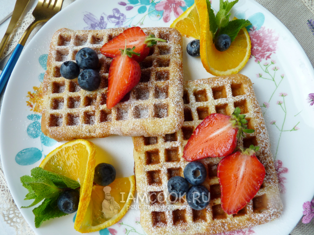 Выпекаю с каждой стороны по 4 минуты и вкусные вафли из рисовой муки с яблоком и апельсином готовы!