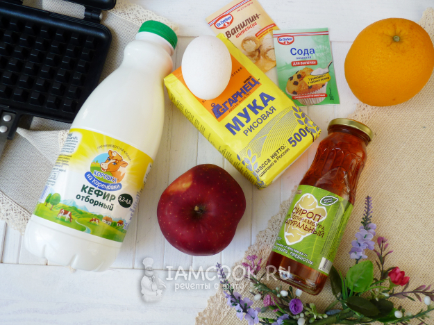 Предлагаю приготовить нежные яблочные вафли с ароматом апельсина (из рисовой муки на кефире).