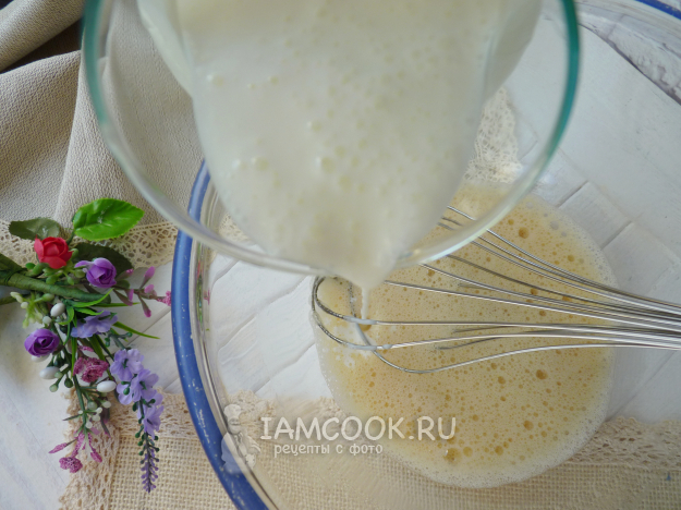 В яйцо добавила сироп топинамбура и взбила всё венчиком.