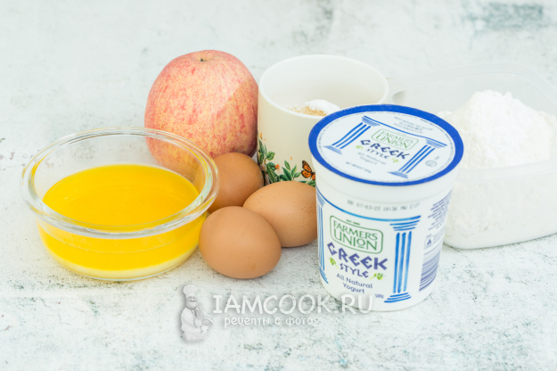 Для приготовления яблочного пирога на йогурте в духовке соберите продукты по списку.