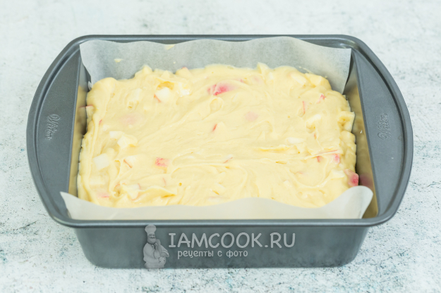 Выложите тесто в форму, застеленную качественным пергаментом.