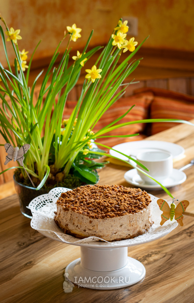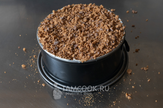 Посыпать торт отложенной пряничной крошкой и поместить в холодильник на сутки.