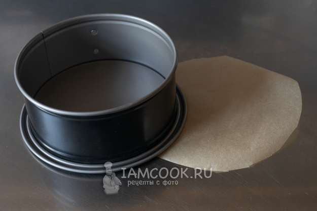 Выложить дно разъёмной формы кондитерским пергаментом.